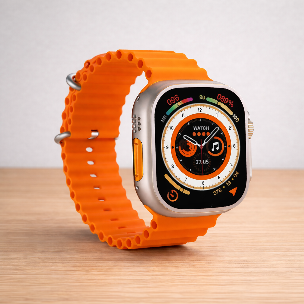 The T800 Ultra Smartwatch features a large 1.99-inch HD touchscreen, Bluetooth calling, health tracking (heart rate, SpO₂, sleep), multiple sports modes, smart notifications, and Android & iOS compatibility in a stylish, everyday-use design.